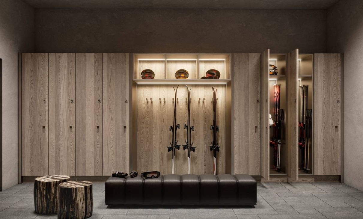 Die Lobby mit einem Kamin und den Schaffellsesseln lädt zum Verweilen ein. Wer es lieber wärmer mag, geht in die hauseigene Sauna. Und für die Skiausrüstung steht ein persönlicher Skischrank inklusive Schuhwärmer zu Verfügung.